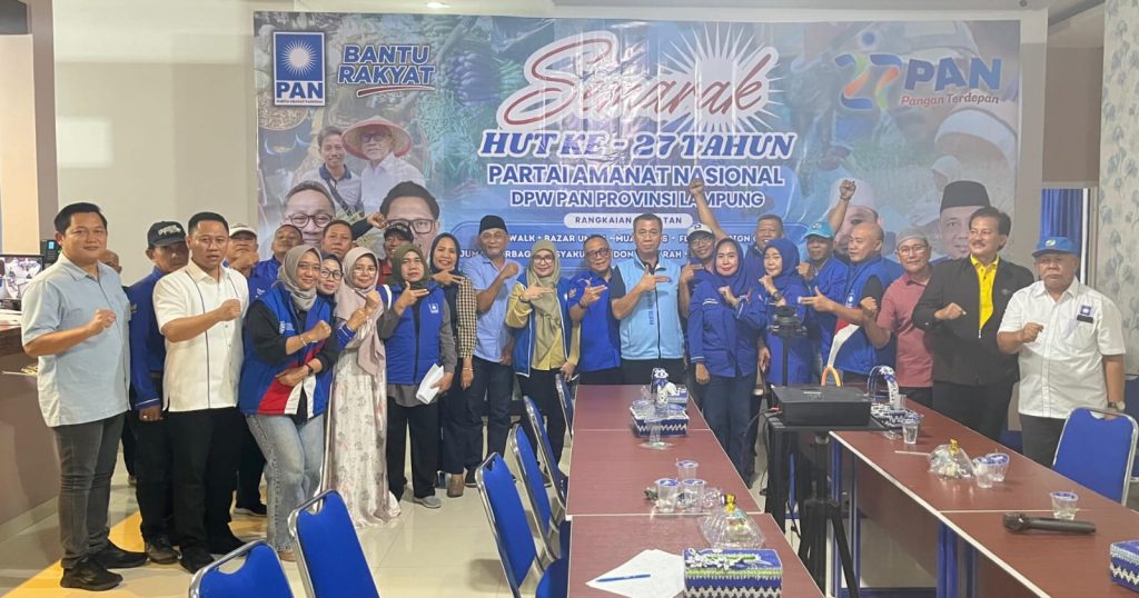 Etik News. Bandar Lampung, 22 Agustus 2025 — Dewan Pimpinan Wilayah (DPW) Partai Amanat Nasional (PAN) Provinsi Lampung menggelar rangkaian kegiatan dalam rangka memperingati Hari Ulang Tahun (HUT) ke-27 PAN.