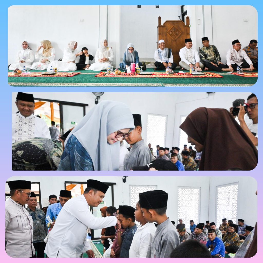 Selain tausiyah, rangkaian kegiatan juga diisi dengan pemberian santunan kepada anak yatim piatu sebagai bentuk kepedulian dan kebersamaan.