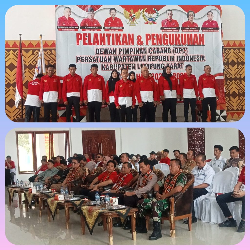 Etik News. Lampung Barat – Dewan Pimpinan Cabang (DPC) Persatuan Wartawan Republik Indonesia (PWRI) Kabupaten Pesawaran menghadiri pelantikan dan Pengukuhan DPC PWRI Lampung Barat di Lamban Pemerintah Daerah Lampung Barat, pada Senin 13 Oktober 2025.