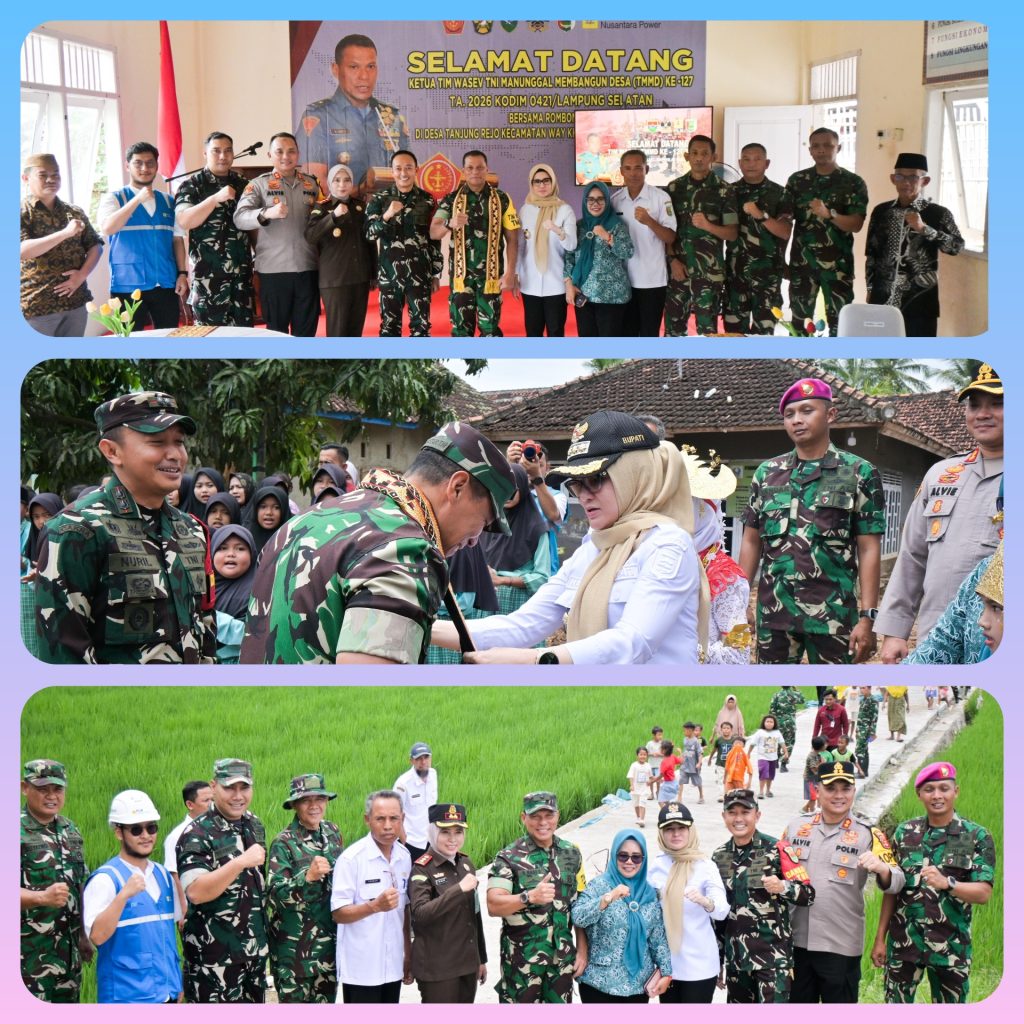 Etik News . Pesawaran, — Bupati Hj. Nanda Indira B., S.E., M.M., mendampingi kunjungan Wakil Asisten Teritorial (Waaster) Panglima TNI, Brigjen TNI (Mar) Bambang Hadi Suseno, dalam rangka Pengawasan dan Evaluasi (Wasev) kegiatan TNI Manunggal Membangun Desa (TMMD) ke-127 yang dilaksanakan oleh Kodim 0421/Lampung Selatan. Kegiatan berlangsung di Aula Kantor Desa Tanjung Rejo, Kecamatan Way Khilau, Kabupaten Pesawaran, Rabu (4/3/2026).